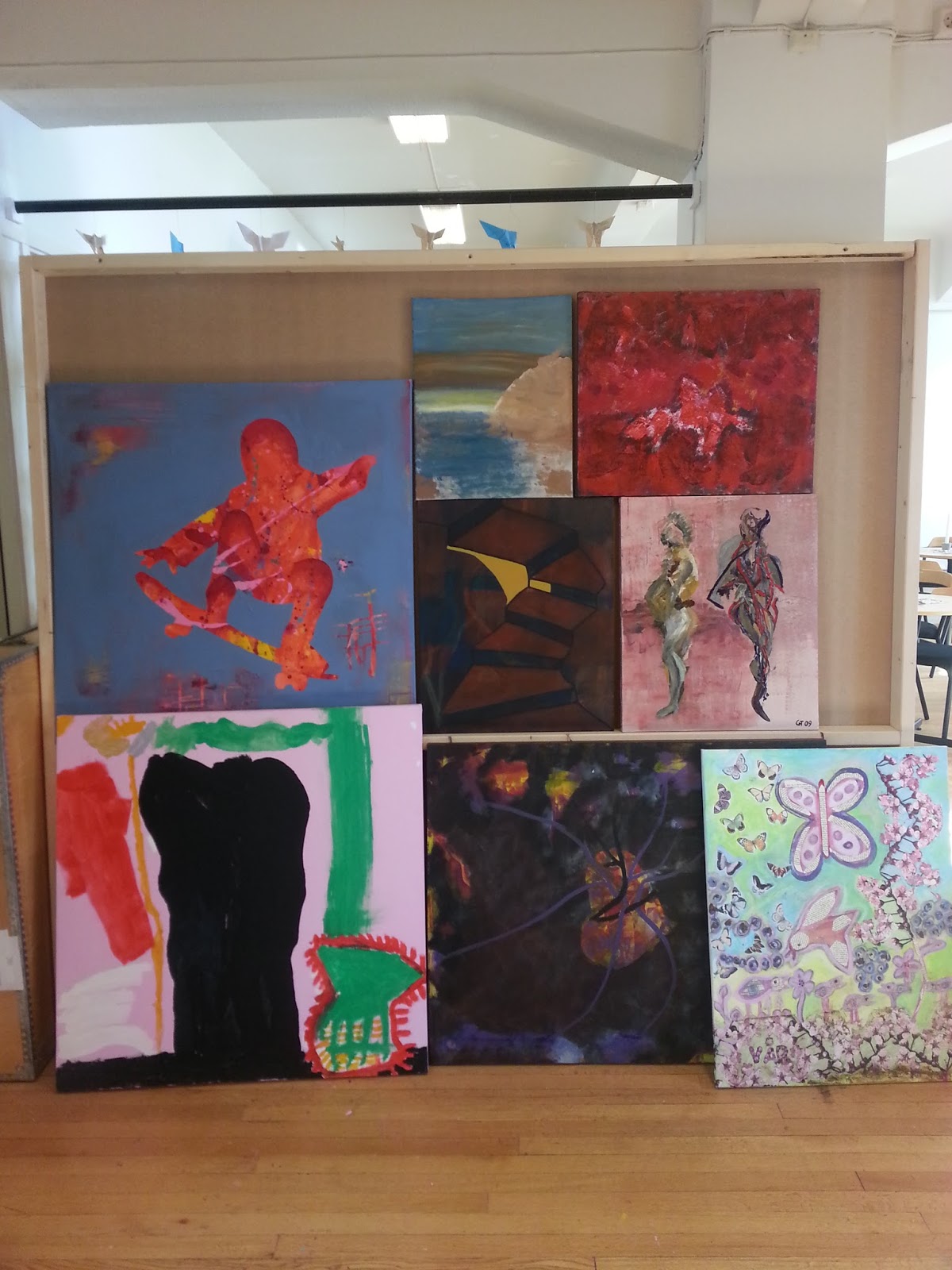 Her ser dere et lite(!) utvalg av alt som fyller opp gulv og hyller på Kunstkilden. I tillegg til dette kommer ca 50 malerier, en god del keramikk, veldig mange tegninger og skisser og en hel del privat maleutstyr og diverse. Dere må hente hjem ting og tang, ellers får vi ikke ryddet ordentlig. Så snart som mulig. OK? :)